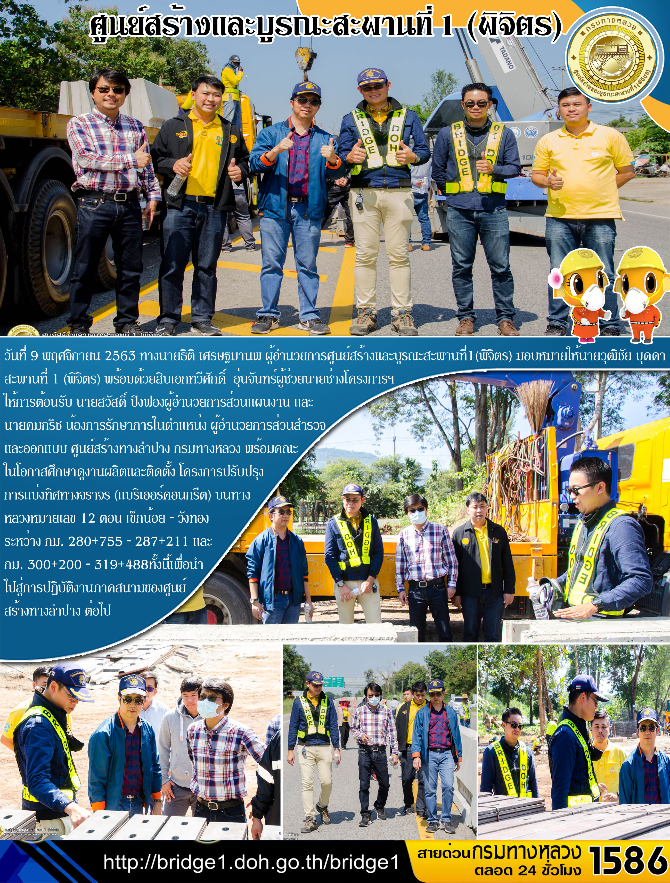 วันที่ 9 พฤศจิกายน 2563 นายธิติ เศรษฐมานพ ผู้อำนวยการศูนย์สร้างและบูรณะสะพานที่ 1 (พิจิตร)