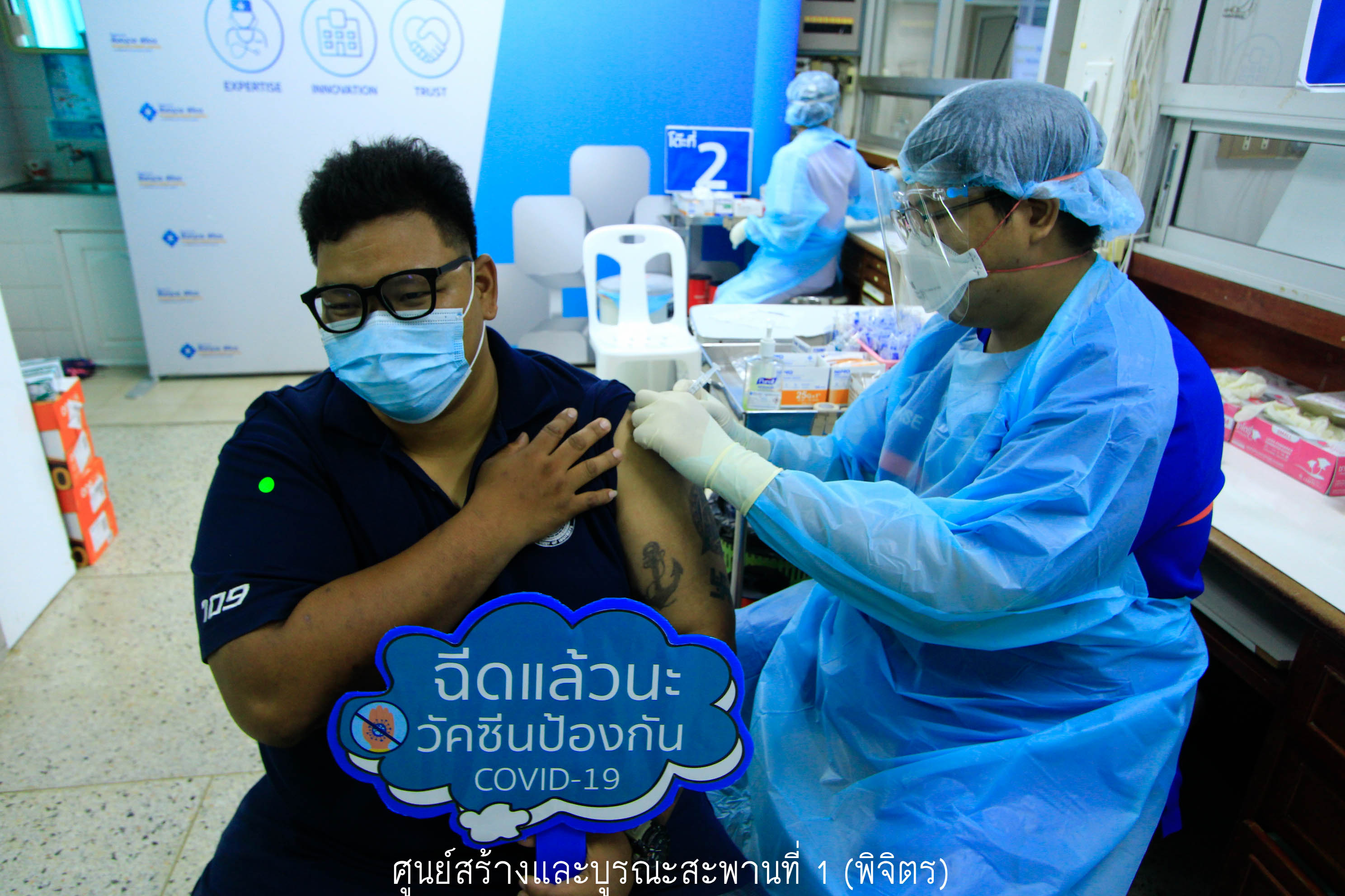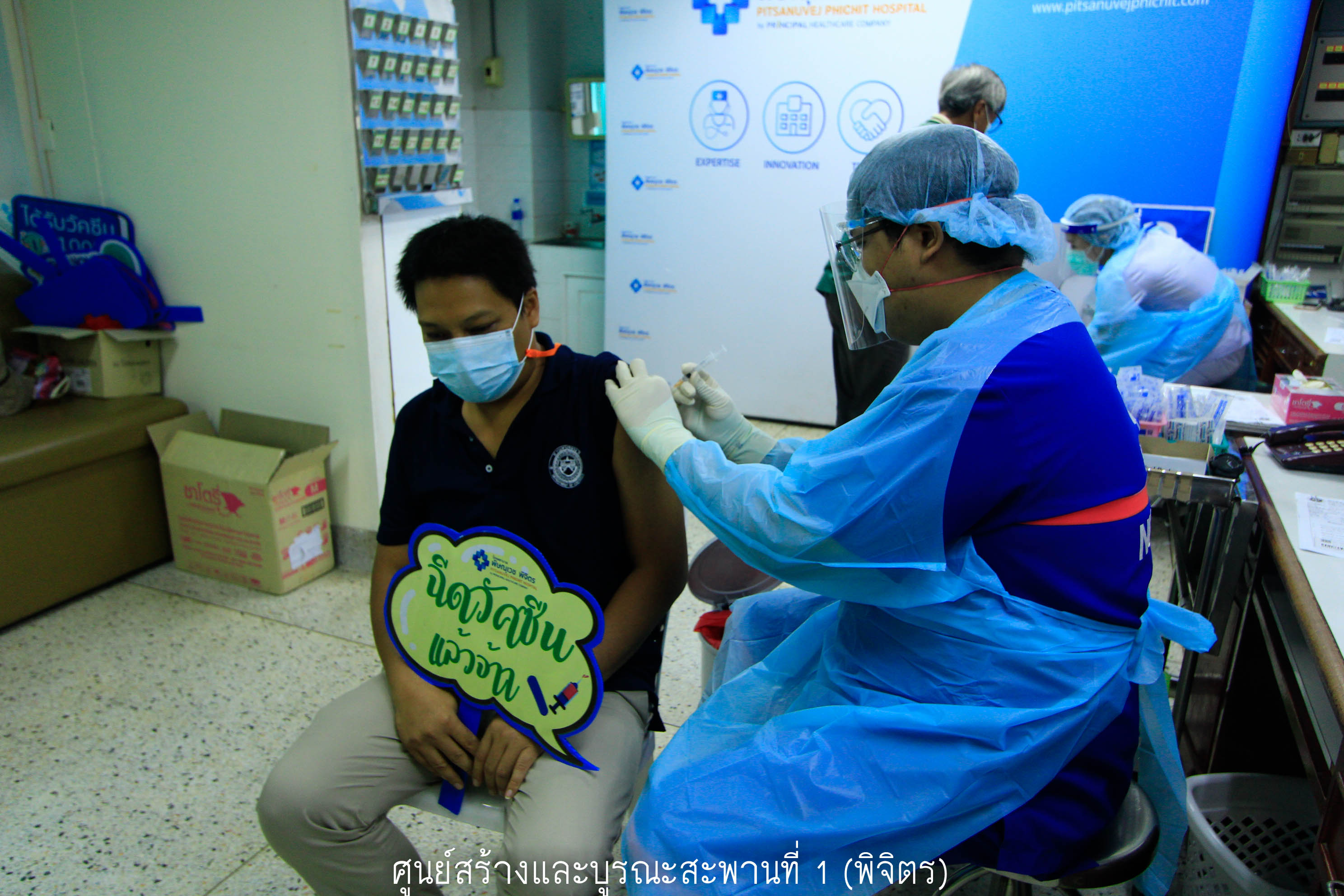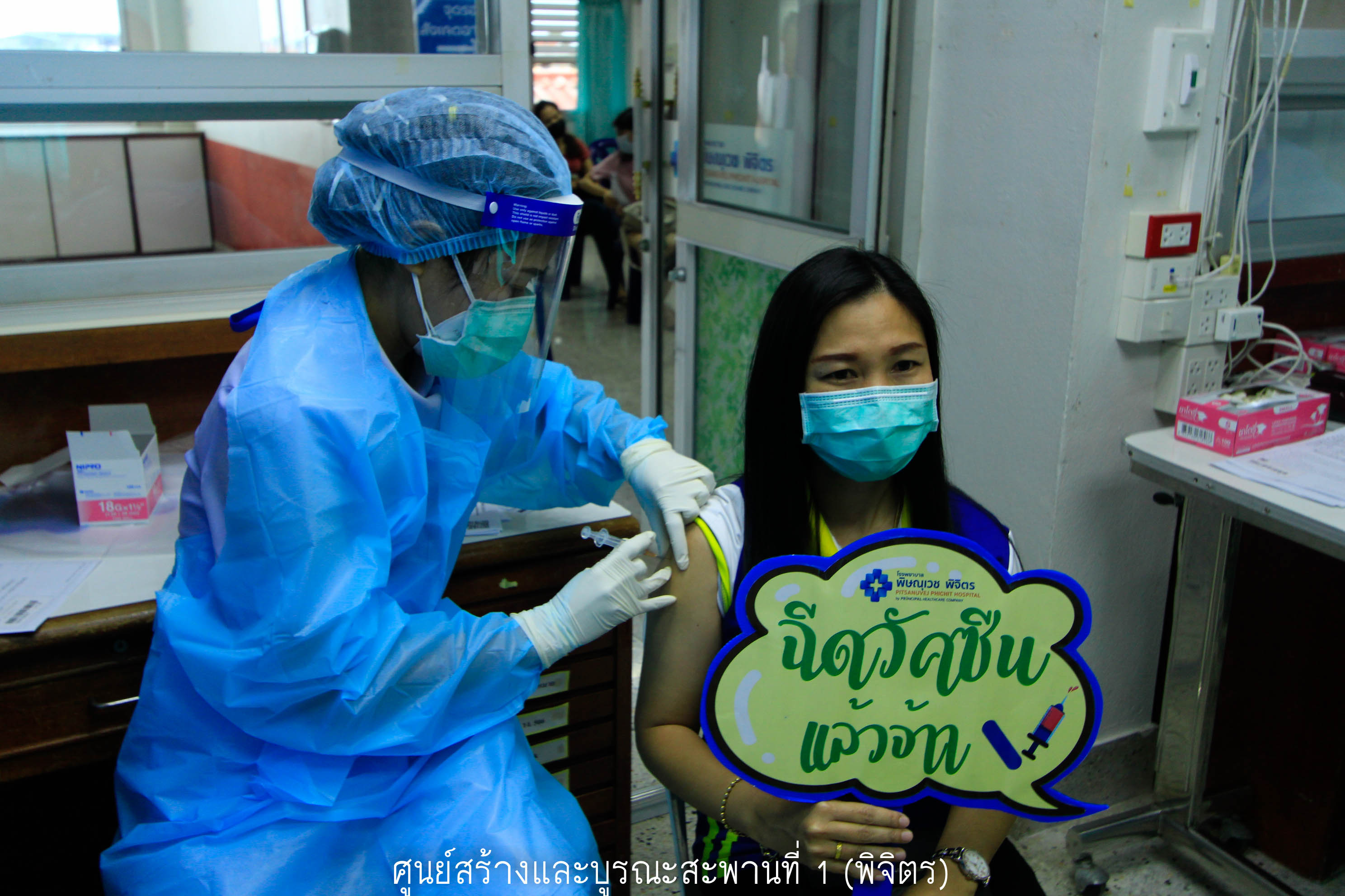 วันที่ 20 กรกฎาคม 2564 เวลา 13.00 น. บุคลากรด่านหน้าของทางศูนย์สร้างและบูรณะสะพานที่ 1 (พิจิตร) เข้ารับการฉีดวัคซีนป้องกันโควิด-19 เพื่อสร้างความปลอดภัย และความเชื่อมั่นในการให้บริการ ตามประกาศคณะกรรมการโรคติดต่อจังหวัดพิจิตร ณ โรงพยาบาลพิษณุเวช จังหวัดพิจิตร