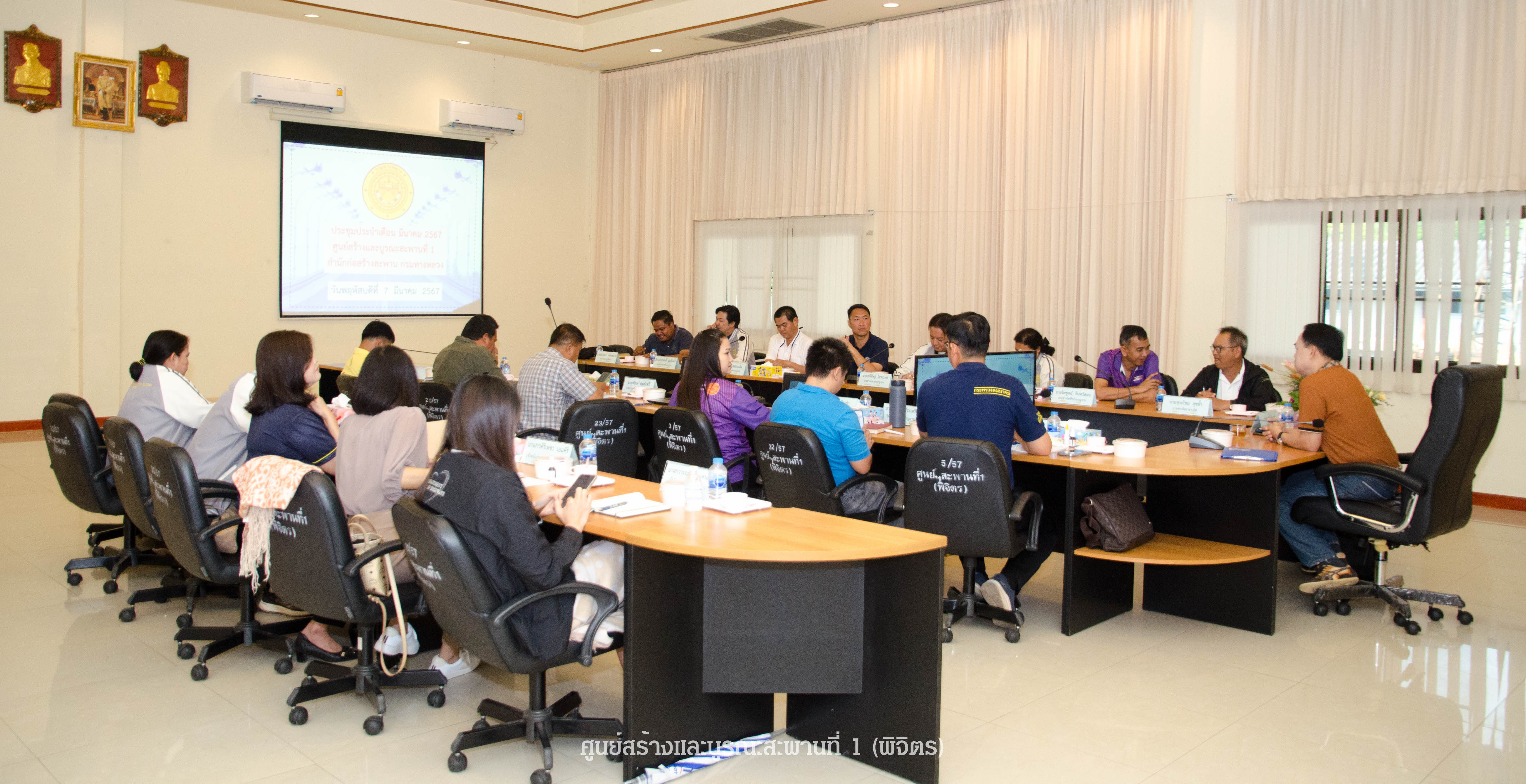 วันที่ 8 พฤศจิกายน พ.ศ. 2566 นายชิดชัย ศรีดามา ผู้อำนวยการศูนย์สร้างและบูรณะสะพานที่ 1 (พิจิตร)พร้อมด้วยข้าราชการในสังกัดศูนย์สร้างและบูรณะสะพานที่ 1 (พิจิตร) ได้เข้าร่วมประชุมประจำเดือน พฤศจิกายน พ.ศ. 2566 เพื่อรับมอบนโยบายการทำงานตามแผนงานประจำปีงบประมาณ 2567และบรรยายสรุปโครงการก่อสร้างสะพานในปีงบประมาณ 2566