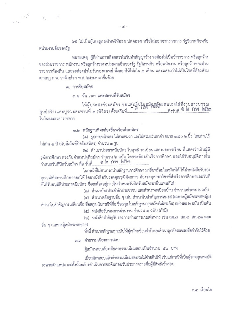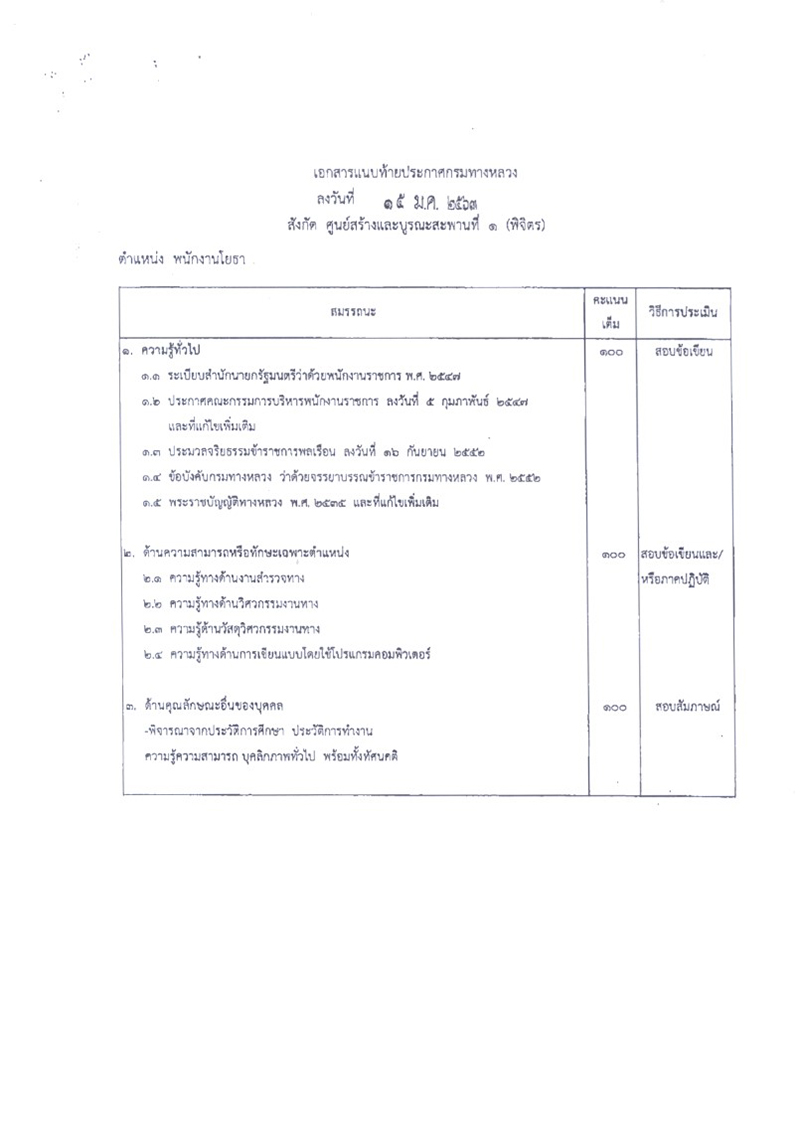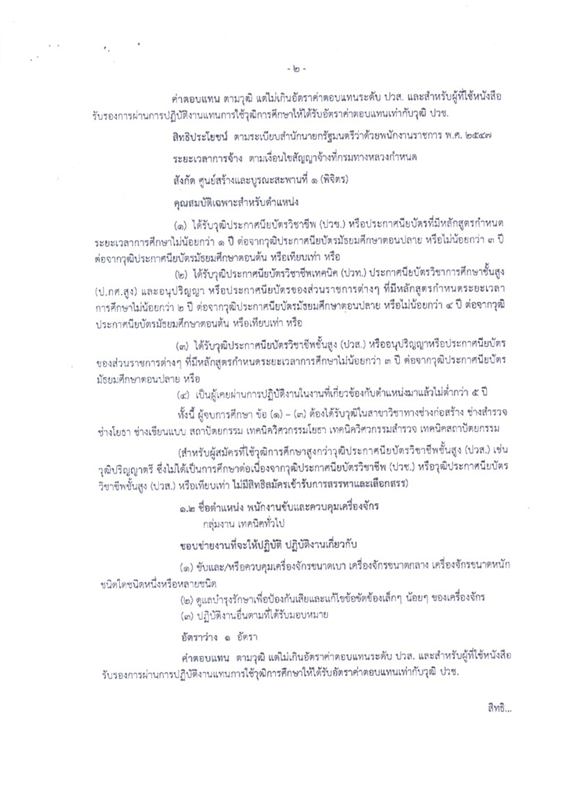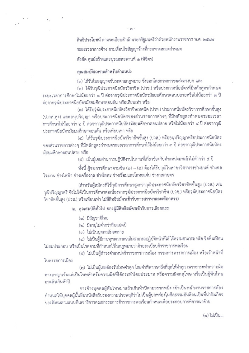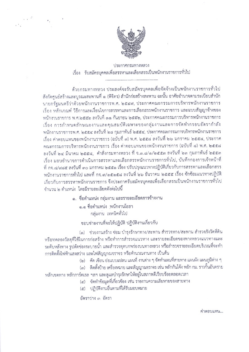ศูนย์สร้างและบูรณะสะพานที่ 1 (พิจิตร) ประกาศรับสมัครบุคคลเพื่อสรรหาและเลือกสรรเป็นพนักงานราชการทั่วไป ตำแหน่ง พนักงานโยธา จำนวน 3 อัตรา ตำแหน่ง พนักงานขับและควบคุมเครื่องจักร จำนวน 1 อัตรา