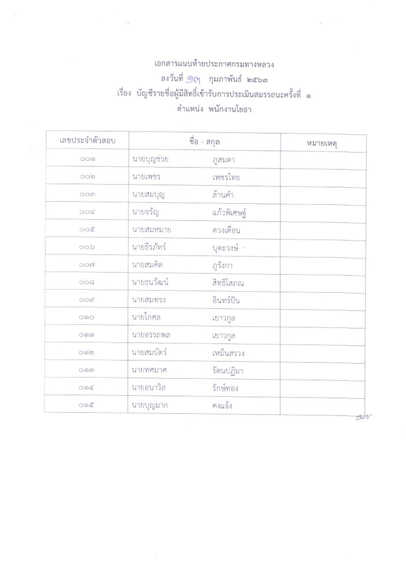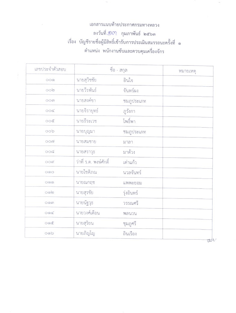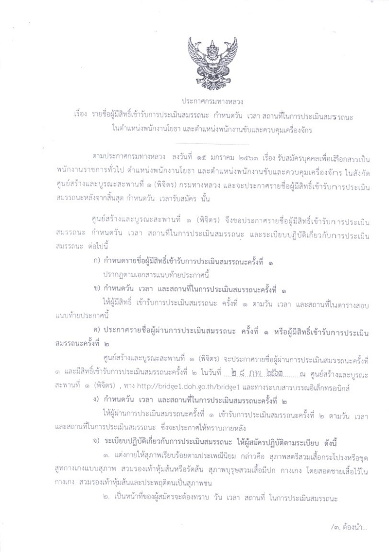 ข้อมูลข่าว : ประกาศรายชื่อผู้มีสิทธิ์เข้ารับการประเมินสมรรถนะ กำหนดวัน เวลา สถานที่ ในการประเมินสมรรถนะ
