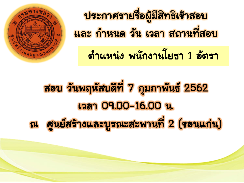 สอบพนักงานราชการทั่วไป ตำแหน่ง พนักงานโยธา 1 อัตรา