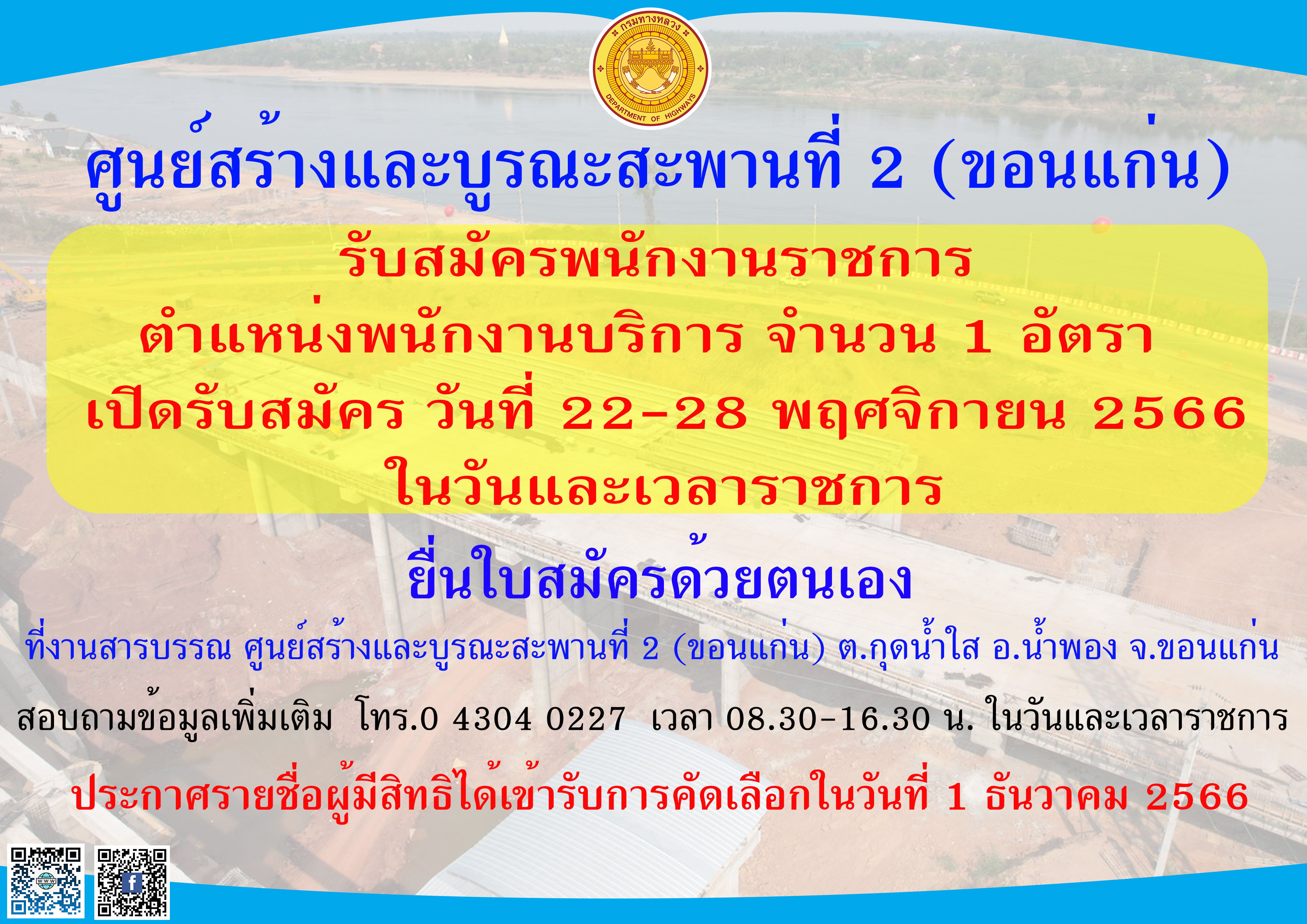 ข้อมูลประกาศรับสมัครพนักงานราชการ : รับสมัครบุคคลเพื่อสรรหาและเลือกสรรเป็นพนักงานราชการทั่วไป ในตำแหน่ง พนักงานบริการ 1 อัตรา