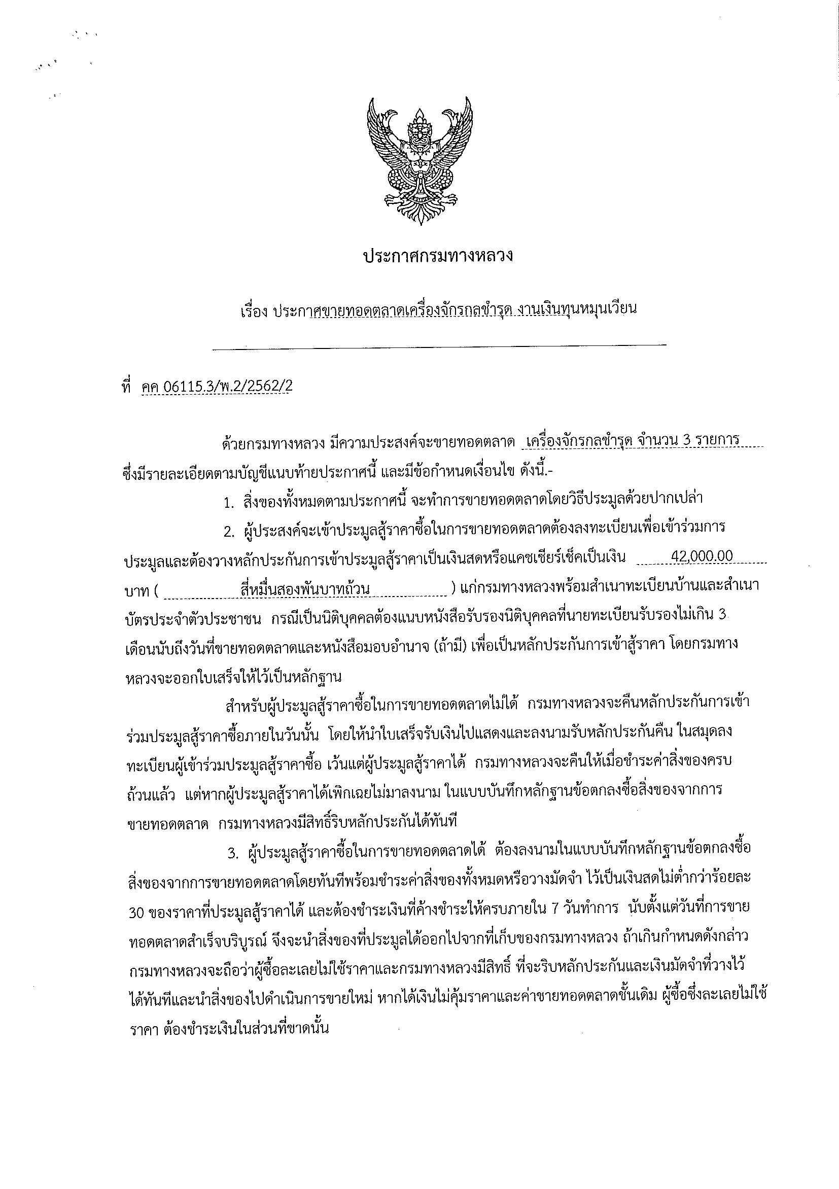 ประกาศขายทอดตลาดเครื่องจักรกลชำรุด งานเงินทุนหมุนเวียน