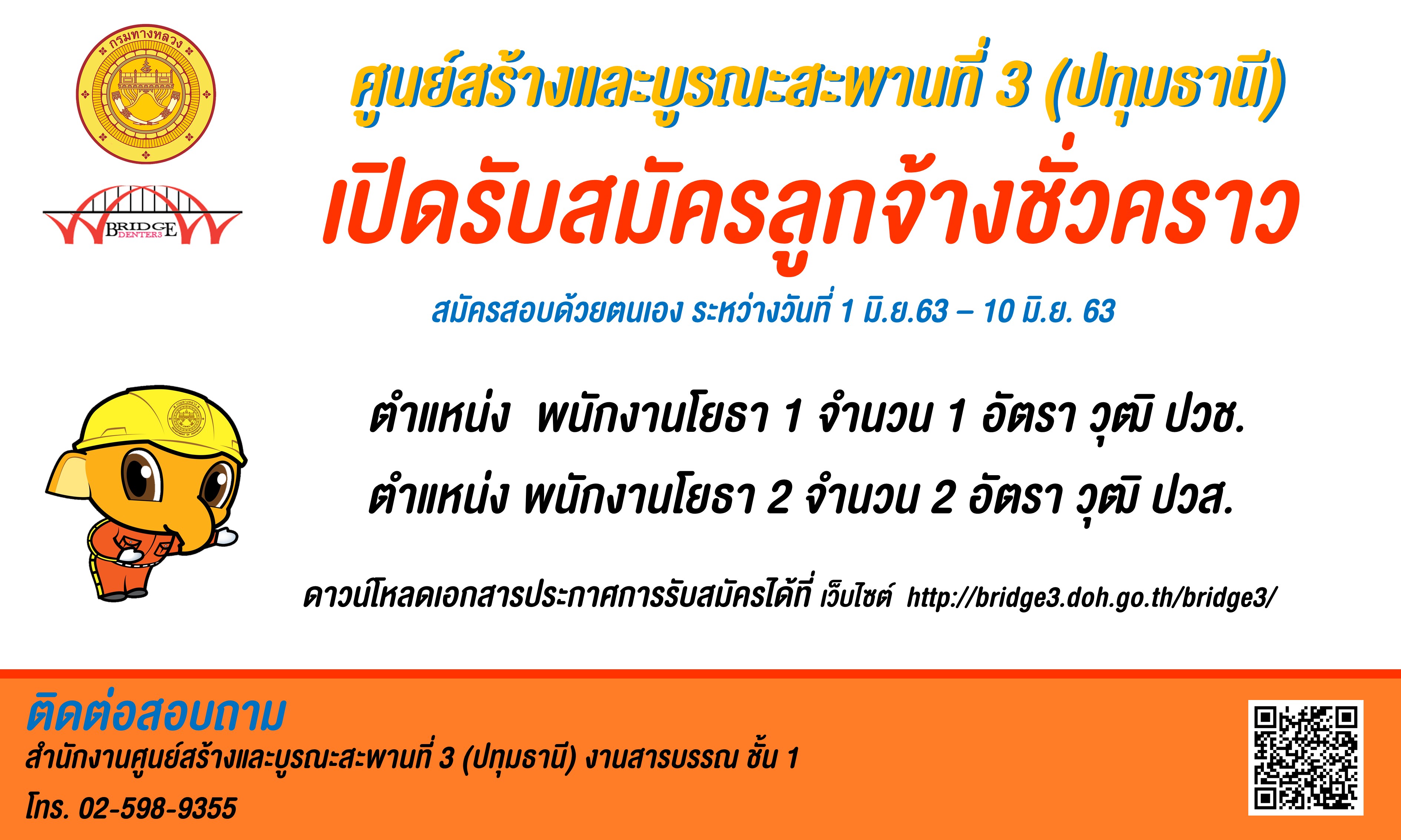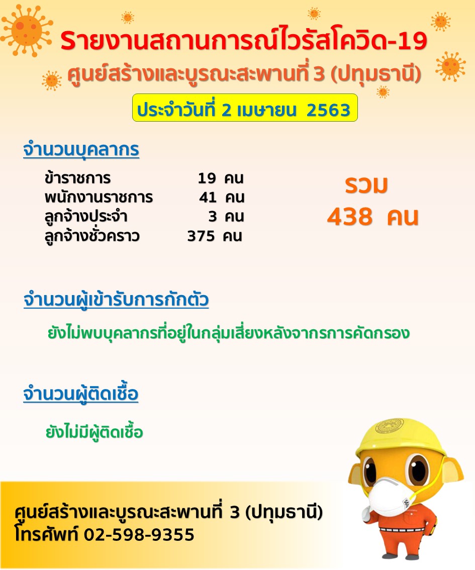 รายงานสถานการณ์ไวรัสโควิด-19 ประจำวันที่ 2 เมษายน 2563 ศูนย์สร้างและบูรณะสะพานที่ 3 (ปทุมธานี)