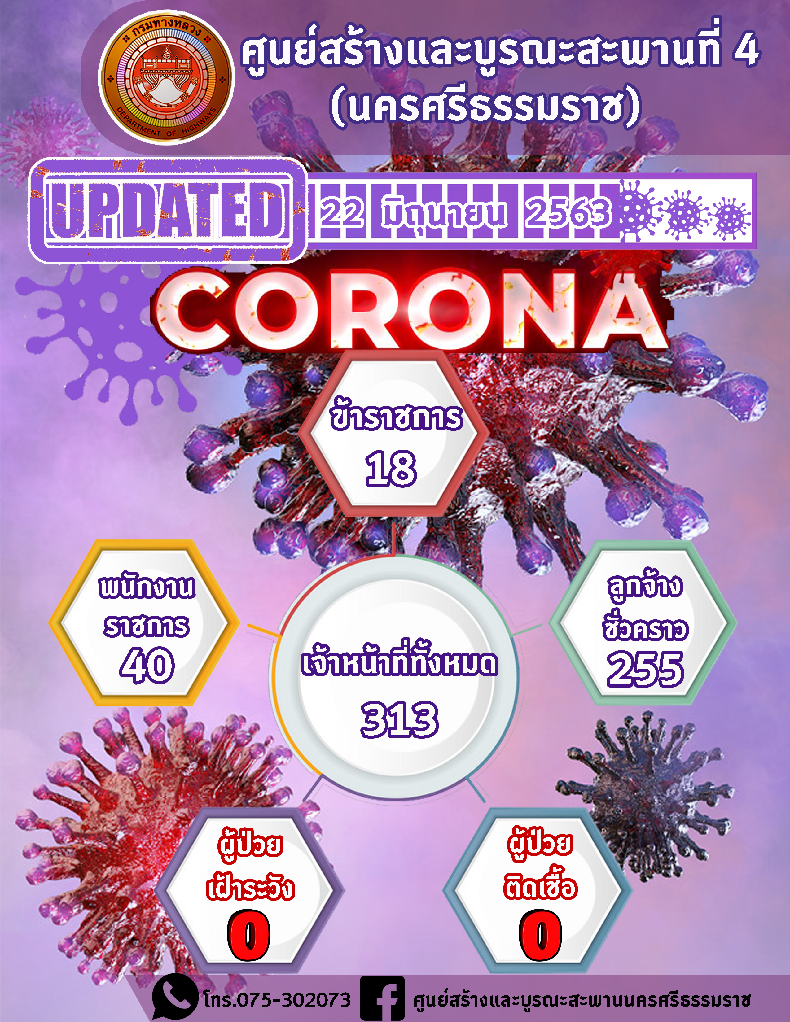 รายงานสถานการณ์ Up date Covid 19.. ณ วันที่ 22 มิถุนายน 2563
