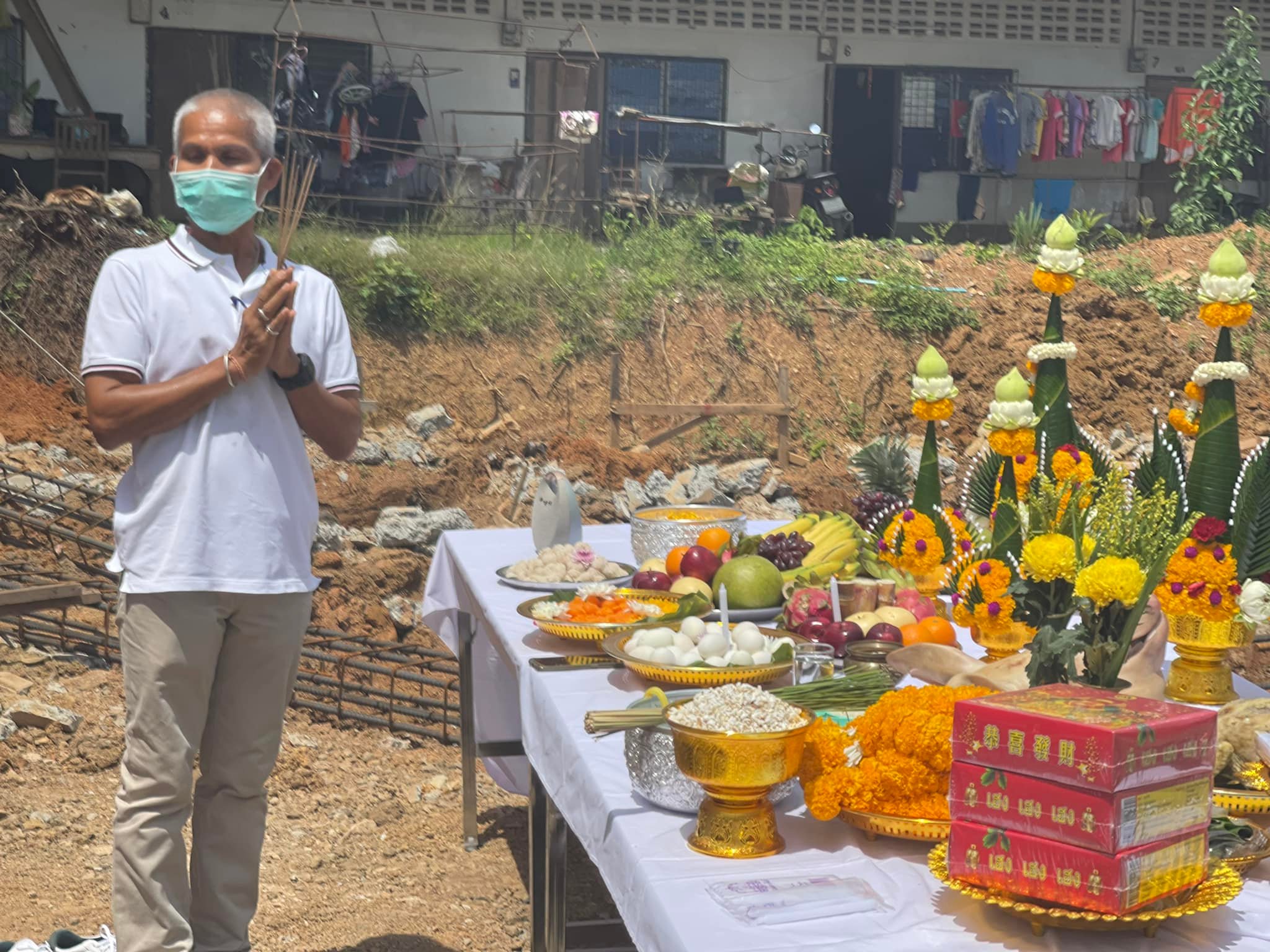 พิธีวางศิลาฤกษ์เสาเอกอาคารแฟลตที่พัก