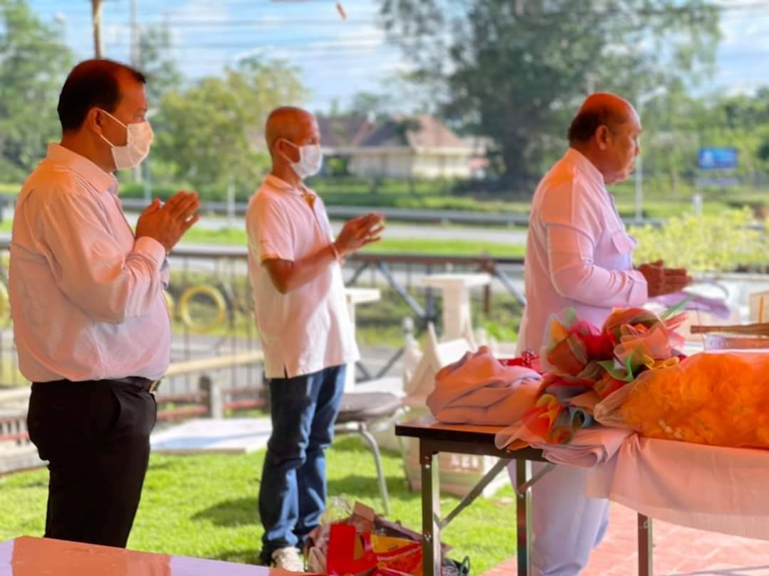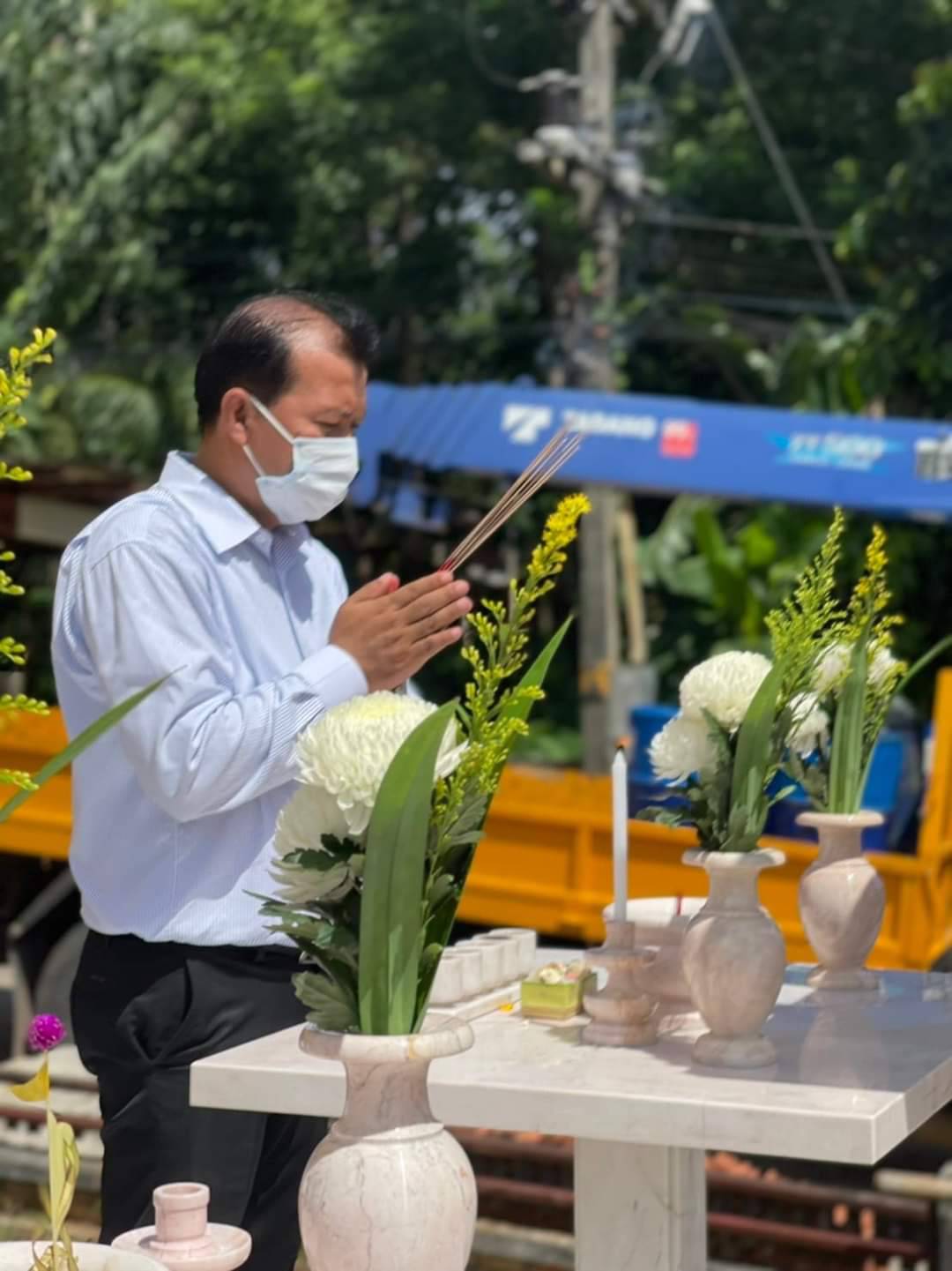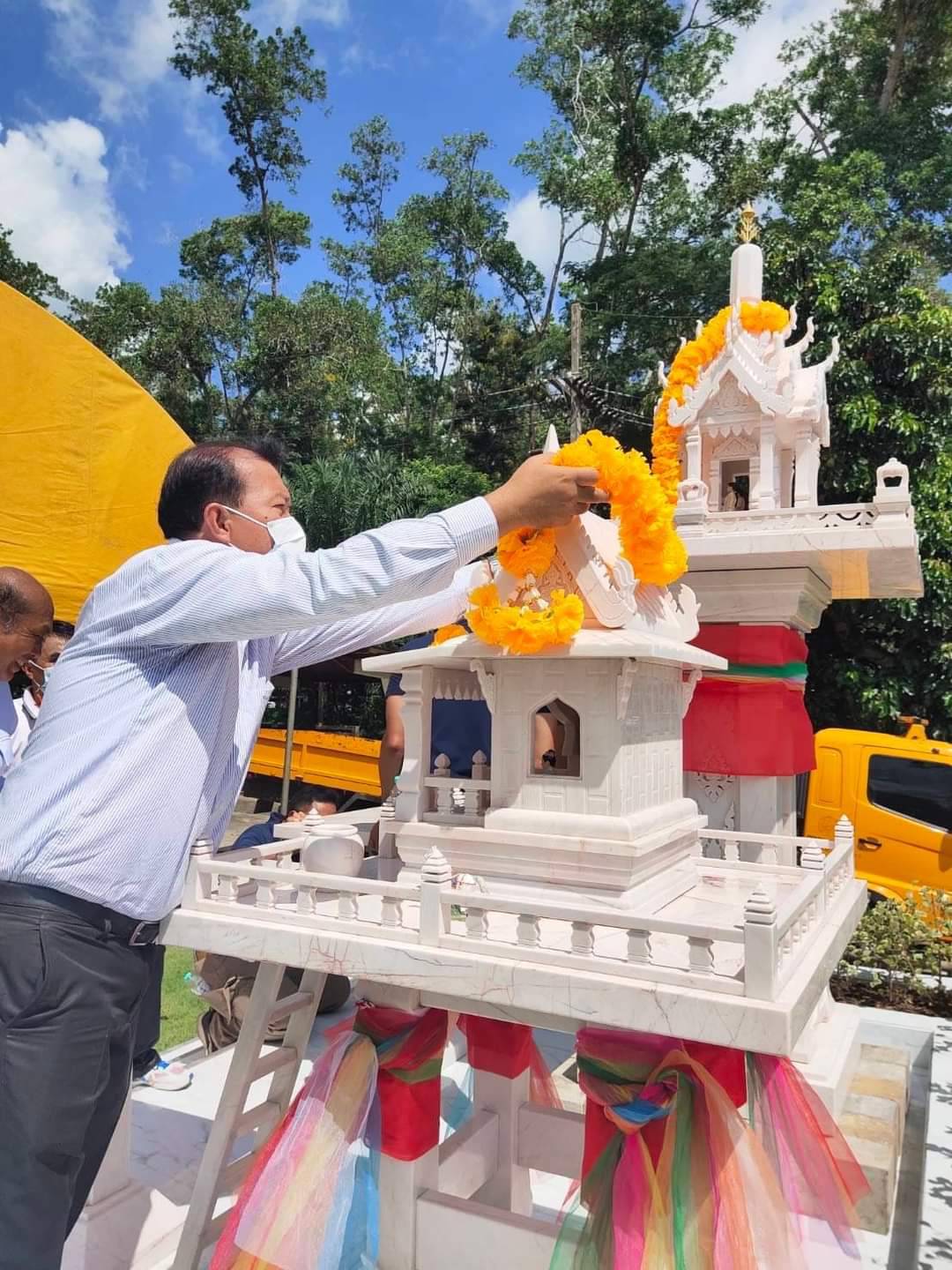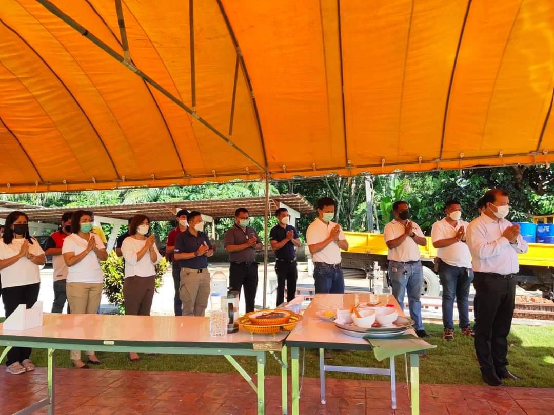 นายธานินทร์ นิยมสินธ์ุ ผู้อำนวยการศูนย์ฯ พร้อมด้วยข้าราชการและเจ้าหน้าที่ ร่วมทำพิธีตั้งศาลพระภูมิ เจ้าที่ ศาลตายายใหม่ ณ บริเวณหน้าอาคารสำนักงานใหม่ ศูนย์สร้างและบูรณะสะพาน ที่ 4 เพื่อความสิริมงคลแก่เจ้าหน้าที่ของศูนย์ฯ