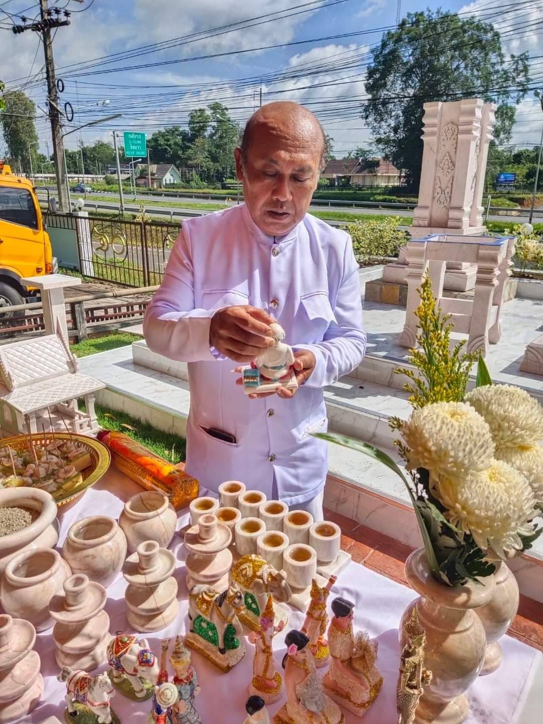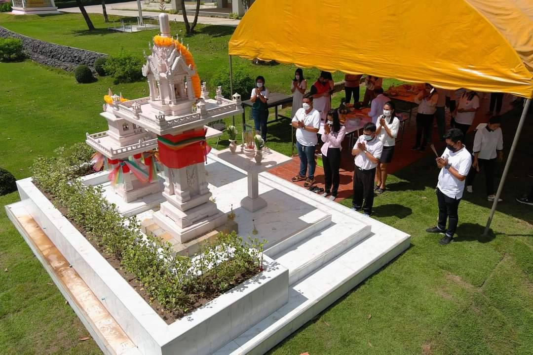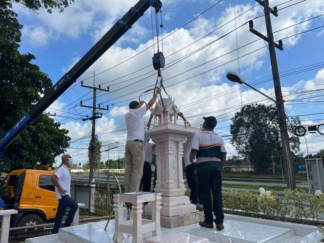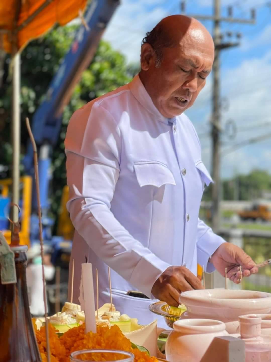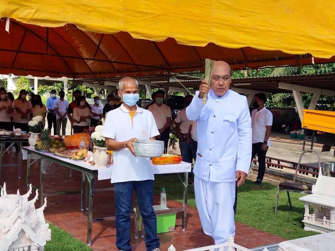นายธานินทร์ นิยมสินธ์ุ ผู้อำนวยการศูนย์ฯ พร้อมด้วยข้าราชการและเจ้าหน้าที่ ร่วมทำพิธีตั้งศาลพระภูมิ เจ้าที่ ศาลตายายใหม่ ณ บริเวณหน้าอาคารสำนักงานใหม่ ศูนย์สร้างและบูรณะสะพาน ที่ 4 เพื่อความสิริมงคลแก่เจ้าหน้าที่ของศูนย์ฯ